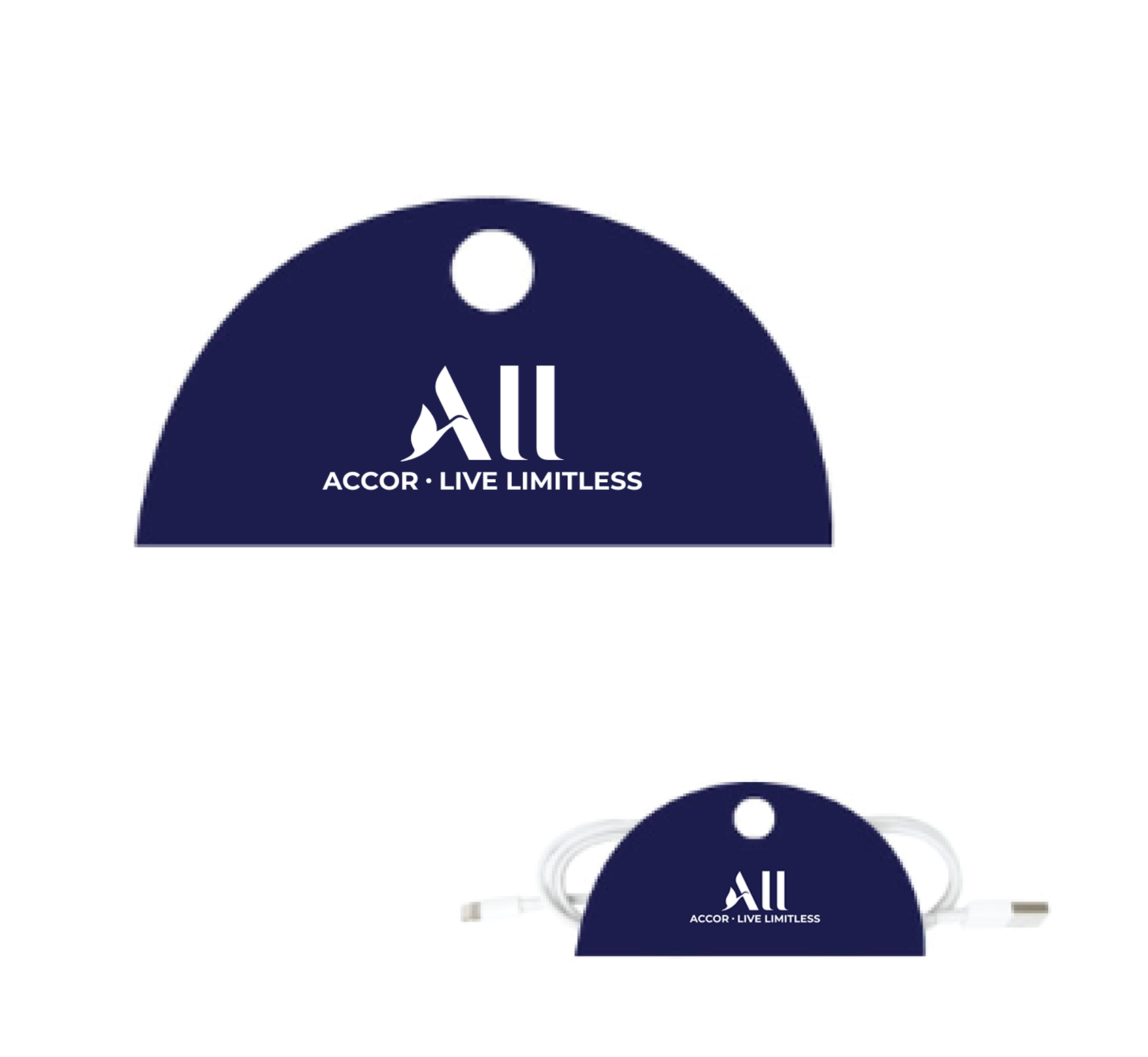 It's an organizational tool that will help keep your cords and cables in order. Fold it around your bundled cords like a taco shell and snap. Decorated with ALL logo.