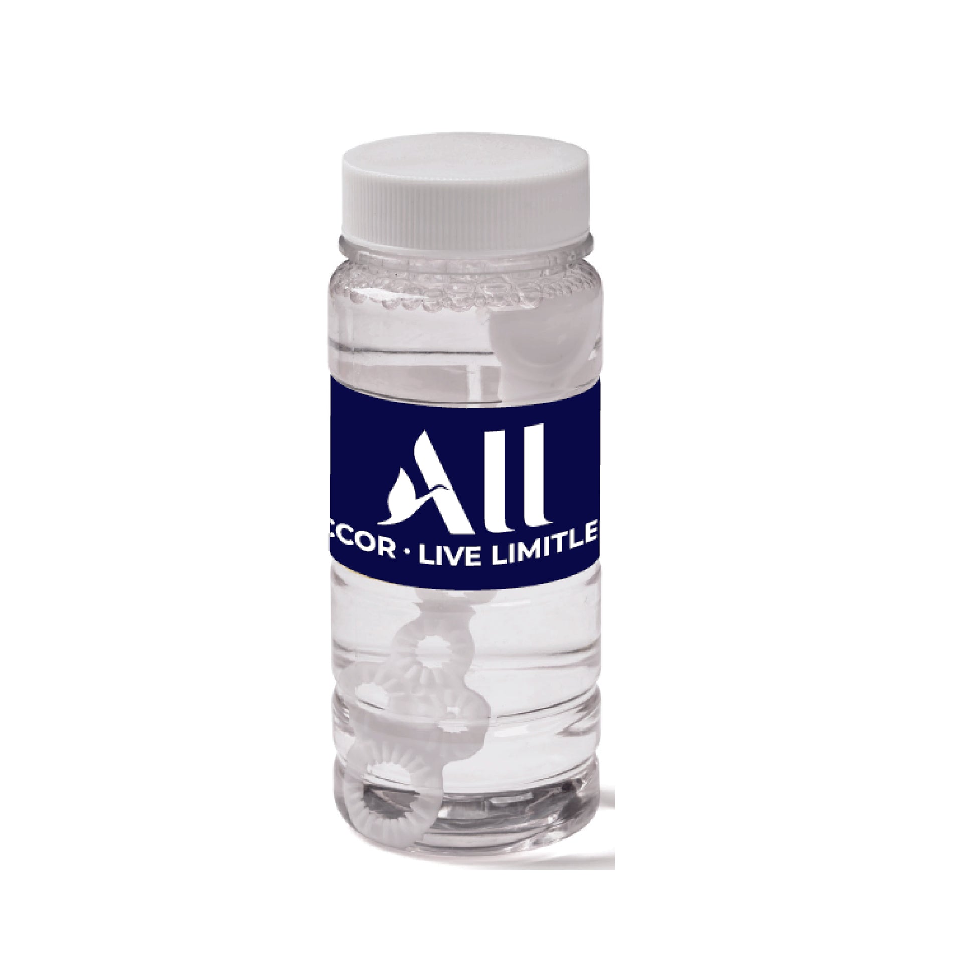 The bubble mixture comes inside of a 4 oz. bottle and includes an easy-grip wand with five bubble-making ports.