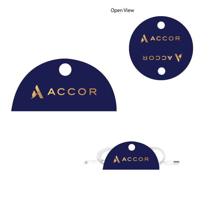 It's an organizational tool that will help keep your cords and cables in order. Fold it around your bundled cords like a taco shell and snap.Imprinted in Gold with Accor logo on navy background.